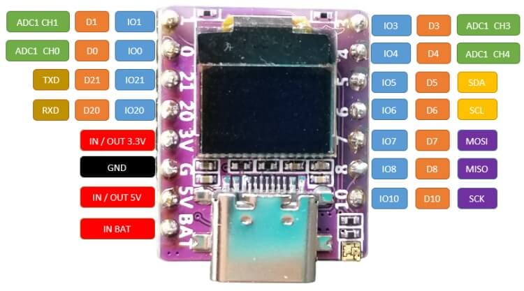 Nachfolgend nun das Pinout des ESP32 C3 mit LCD-Display.