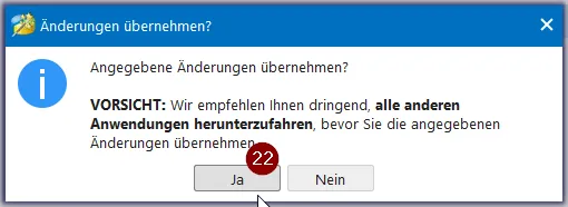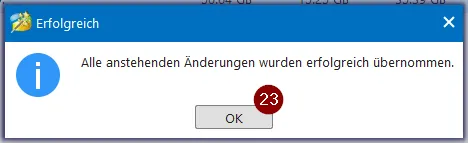 Wenn der Vorgang erfolgreich war, dann wird dieses im Dialog „Erfolgreich“ angezeigt, diesen können wir dann mit der Schaltfläche „OK“ (23) schließen und damit ist der Vorgang abgeschlossen.