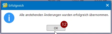 Der Prozess ist in wenigen Augenblicken ausgeführt und im Abschluss wird dir dieses mit einer Erfolgsmeldung angezeigt. In diesem Dialog klicken wir ebenso auf „OK“ (12).