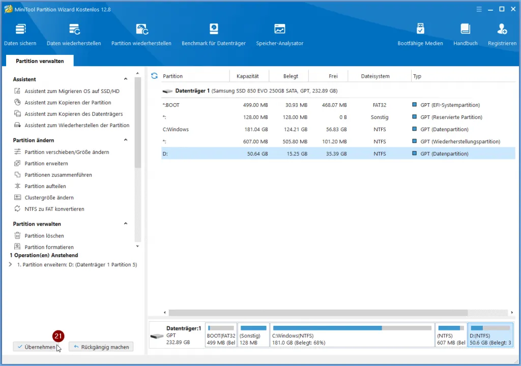Beispiel – Erweitern einer Partition mit MiniTool Partition Wizard