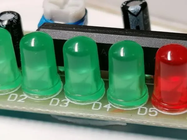 Es sind jeweils fünf grüne LEDs im Set und eine rote, somit kann man beim Aufbau selber entscheiden, ob man die rote LED verbaut (zum optischen Erkennen des maximalen Ausschlags).