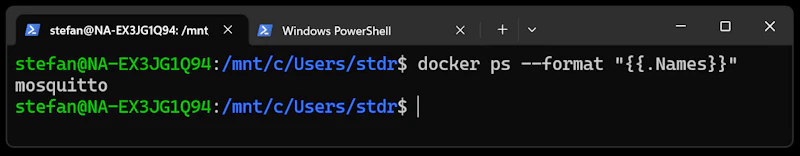 Da wir den MQTT-Broker in einem Docker-Container betreiben, müssen wir für einige Befehle direkt innerhalb des Containers arbeiten.
