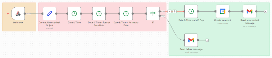 Aktuell wird jede Abwesenheit eingetragen, ohne dass der Nutzer später die Möglichkeit hat, den Eintrag selbst zu stornieren oder zu bearbeiten. Genau hier kann n8n seine Stärken ausspielen.