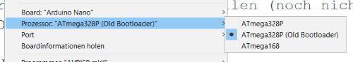 Der Nano Strong ist wie bereits erwähnt vom Chip her ein einfacher Arduino Nano. In der Arduino IDE muss man neben dem Port (welcher individuell vom Computer gesetzt werden muss) auch den Bootload auf „ATmega328P (Old Bootloader)“ einstellen.