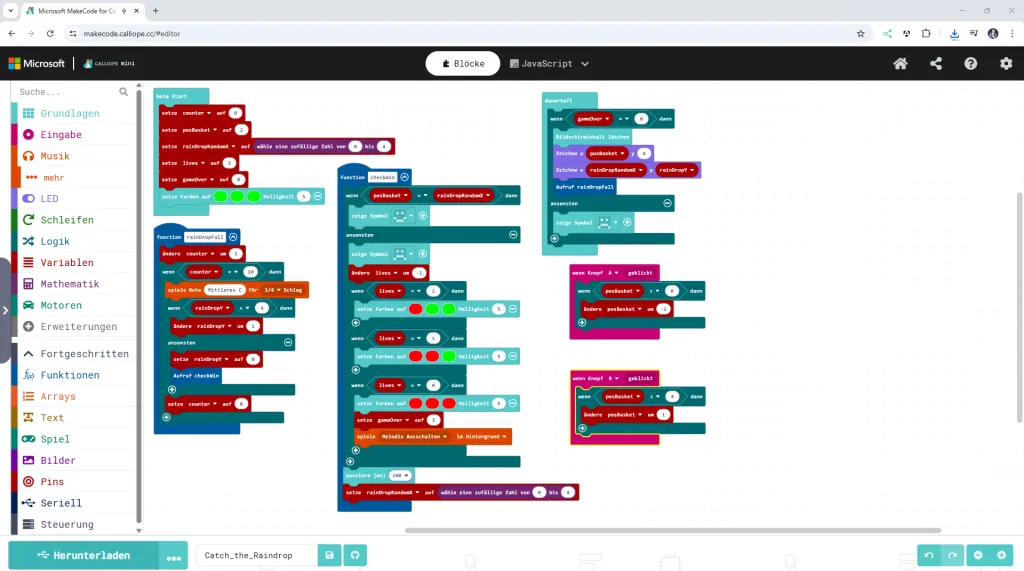 Calliope Mini Spiel – Fang den RegentropfenHerunterladen