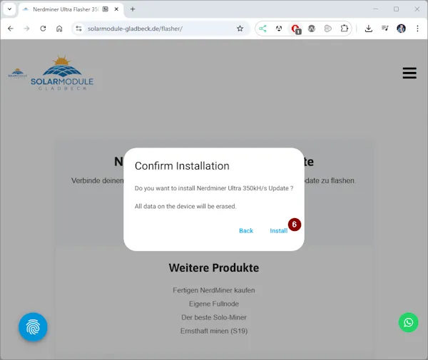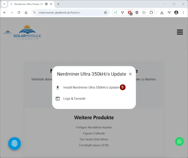 Schritt 3 – klicken auf „Install Nerdminer Ultra 350kH/s Update“