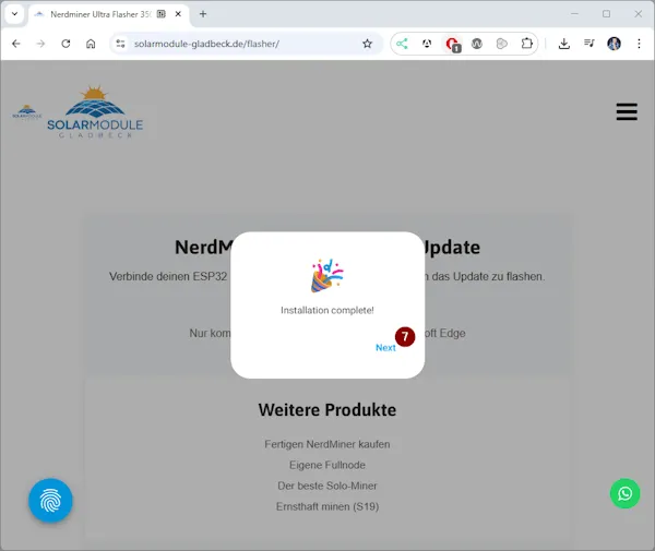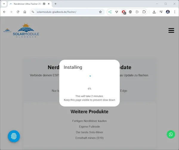 - Die aktuelle NerdMiner-Firmware (Webflasher) von https://solarmodule-gladbeck.de/flasher/