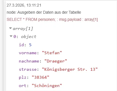 👉 Genau dort liefert die SQLite Node auch das Ergebnis der SQL-Abfrage.