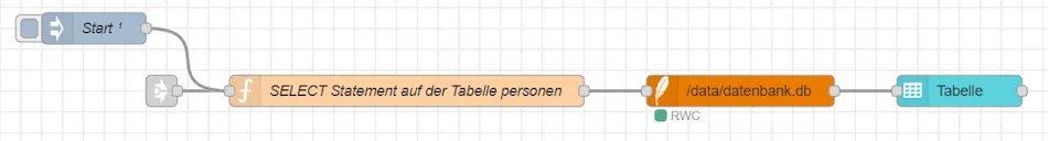 Im Anschluss folgt eine Function-Node, die das SELECT-Statement erstellt und über msg.topic an die SQLite-Node übergibt.