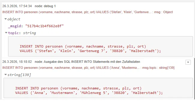 👉 Die SQLite Node ist nun einsatzbereit und verarbeitet SQL-Statements aus msg.topic.