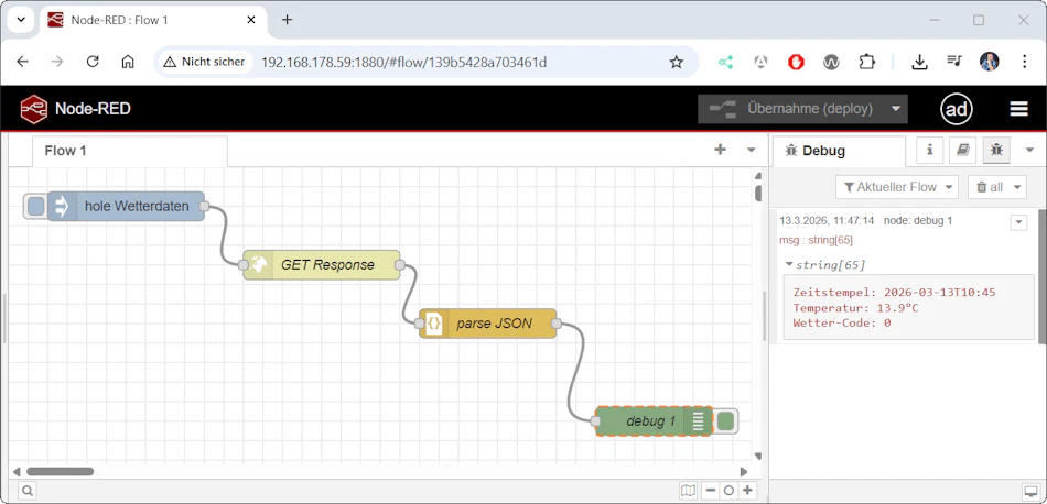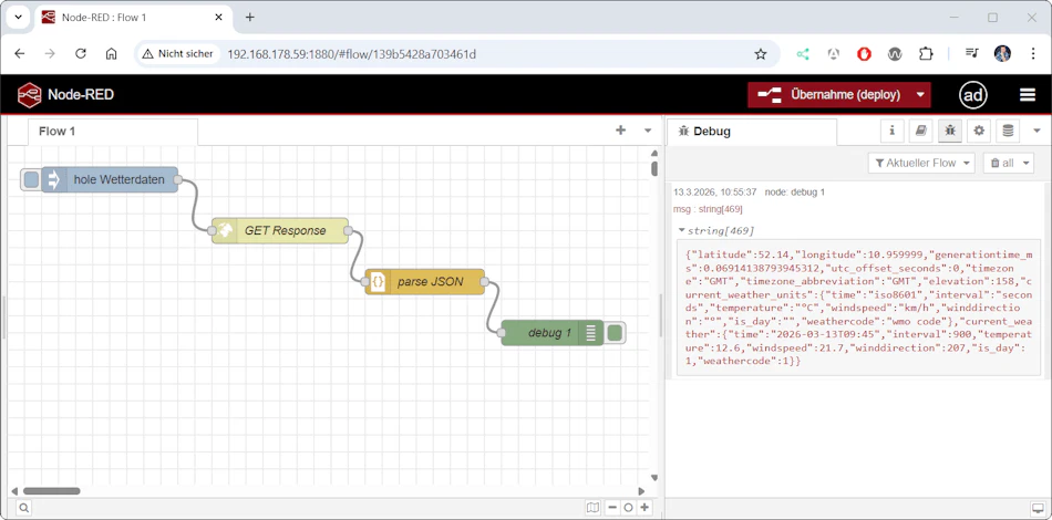 Damit hast du die Grundlage geschaffen, um später eigene Automatisierungen mit externen Datenquellen umzusetzen – zum Beispiel für Smart-Home-Projekte, Wetterstationen oder IoT-Anwendungen.