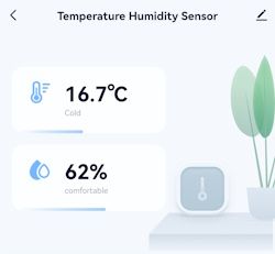 Wenn das Gerät eingerichtet ist, wirst du gleich zum Dashboard weitergeleitet und kannst sofort die aktuelle Temperatur und rel. Luftfeuchtigkeit ablesen.