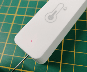 Bevor wir den Sensor einrichten können, müssen wir 2 AAA-Batterien einlegen. Wenn dieses geschehen ist, geht dieser Sensor sofort in den Kopplungsmodus und ein kleines rotes Licht fängt an zu blinken.