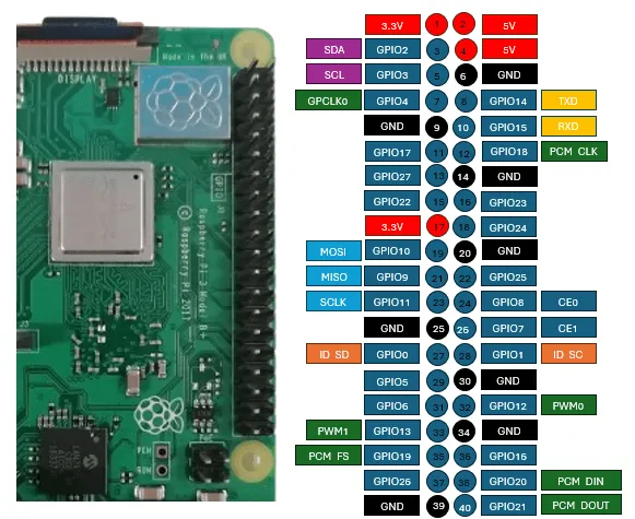 Als erstes schließen wir das OLED Display an den Raspberry Pi an. Wie erwähnt verwende ich den Raspberry Pi 3B+ welcher nachfolgendes Pinout hat.