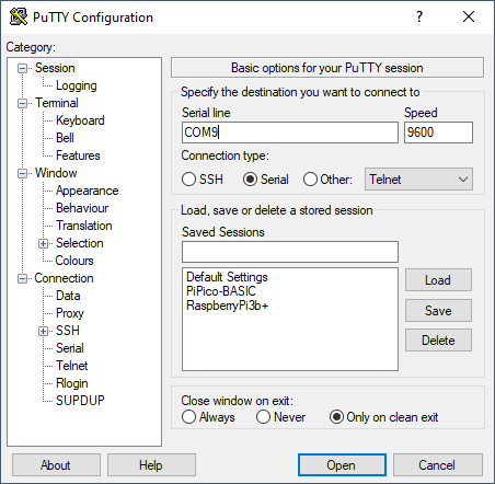 Zusätzlich gebe ich noch die berechneten / ermittelten Werte auf der seriellen Schnittstelle aus. Mit dem kostenfreien Tool Putty kannst du dich dann zu deinem Mikrocontroller verbinden und dir die Daten dort dann anzeigen lassen.