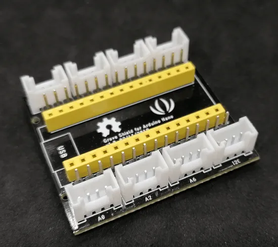 Ein Grove Shield ist ein Modul mit einem Sensor / Aktor und einer speziellen Schnittstelle. Diese Schnittstelle ist ein Grove Connector, welcher über einen fest definierten Pinout verfügt.
