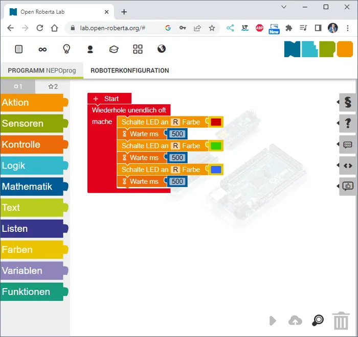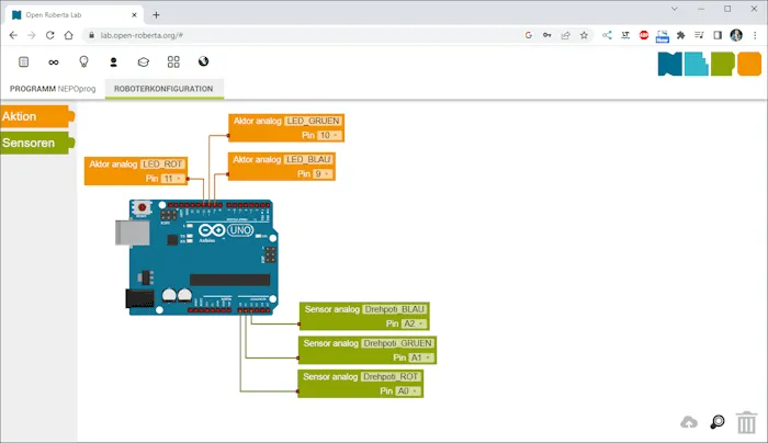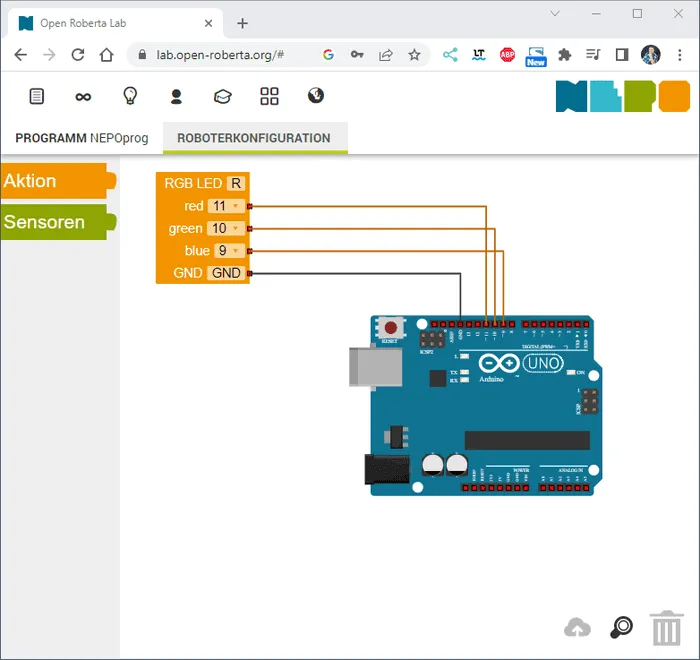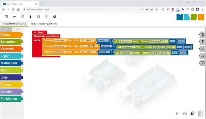 Programmieren der RGB LED in Open Roberta Lab