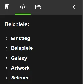 - die beiden Schaltflächen zum Erweitern / Einklappen des Menüs