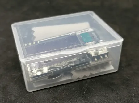 Zum Lieferumfang gehört neben dem kleinen Mikrocontroller zwei CR2032 Knopfzellen und ein kleines Putztuch für das Display.