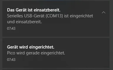 Wenn du deinen PicoBoy an den PC mit einem passenden USB-Typ-C Datenkabel angeschlossen hast, dann wird dieser als Pico erkannt und als „Serielles USB-Gerät“ eingerichtet.