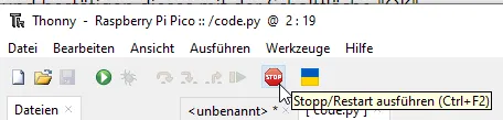 Wenn wir Änderungen durchführen möchten, dann muss zunächst das aktuelle Skript über die Schaltfläche „Stopp/Restart ausführen“ beendet werden.
