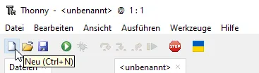In der Toolbar findest du das Icon „Neu“, ein Klick auf dieses erzeugt einen neuen Reiter, in welchem wir nun unseren Code schreiben können.