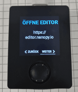 Nachdem die WiFi-Verbindung erfolgreich hergestellt wurde, kannst du den Mikrocontroller mit NanoPy verbinden. Dazu wählst du im Hauptmenü des Mikrocontrollers den Eintrag ‚PAIRING‘. Nun öffnest du auf deinem PC den Browser und gehst zur Adresse https://editor.nanopy.io. Dort wirst du aufgefordert, den Pairing-Code einzugeben, der dir auf dem Display des Mikrocontrollers angezeigt wird. Gib diesen Code in das entsprechende Feld auf der Website ein, um die Verbindung herzustellen. Sobald die Verbindung erfolgreich aufgebaut wurde, wird das Display des Mikrocontrollers geleert. Du bist nun bereit, deinen Mikrocontroller direkt über den Browser zu programmieren und kannst auf alle Funktionen von NanoPy zugreifen. Diese einfache und schnelle Verbindungsmethode ermöglicht es dir, Programme drahtlos und in Echtzeit auf deinen Mikrocontroller zu übertragen.