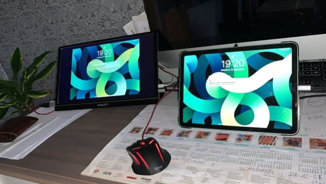 Das Display kann auch an ein iPad Air angeschlossen werden und bietet somit die Möglichkeit über ein Multi-Monitor betrieb an dem Gerät zu arbeiten.