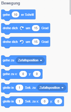 Die Katze kann sich „richtig“ bewegen d.h. die Beine bewegen sich. Um dieses zu machen müssen wir unserer Katze sagen wie viele Schritte diese laufen soll und zusätzlich müssen wir in unserem Programm die Anweisung erstellen das sich das „Kostüm“ ändert.