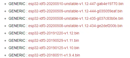 Die Version mit „unstable“ sind tagesaktuelle Artefakte und können ggf. Fehler / Features beinhalten, welche zu einem Fehlverhalten führen können. Ich habe mich für die Datei „esp32-idf3-20101220-v1.12.bin“ entschieden und heruntergeladen. Diese Datei habe ich in das Verzeichnis abgelegt, wo auch die ausführbare Datei esptool.py.exe liegt.