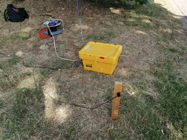 Wie es mit Projekten nun mal so ist, kommt ersten alles anders als gedacht. Die Kabelbrücke (Bild 1) stand für dieses Projekt auf dem Gelände zu weit nach hinten. So habe ich die Stromversorgung von Baum zu Baum gespannt (Bild 2).