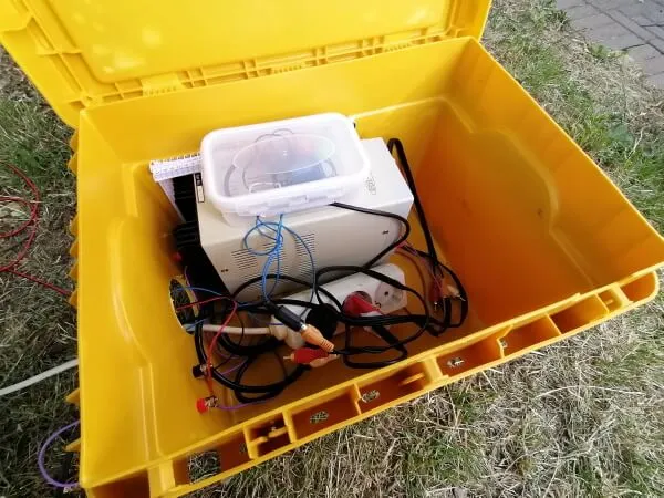 Das Problem an dem Aufbau mit einer solchen Lichtschranke war, dass der Laserpointer deutlich zu schwach ist und schon nach nur 3 m nicht mehr erkannt wurde.