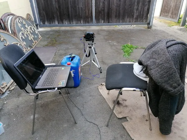 Als Kamera wurde eine Spiegelreflexkamera der Marke Pentax verwendet. Diese hat eine Schnittstelle, über welche man den Fokus aktivieren kann, sowie ein Foto aufnehmen kann (durch Kurzschließen eines Kontaktes).