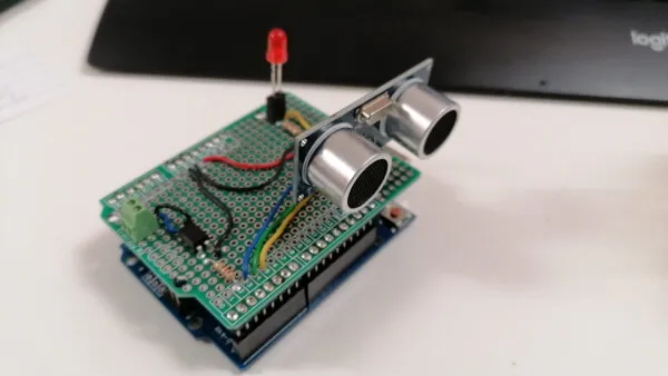 Arduino UNO mit Ultraschallabstandssensor und Optokoppler