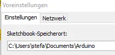 Du findest die Pfadangabe unter Datei > Voreinstellungen im Feld „Sketchbook-Speicherort“.