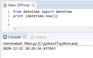 from datetime import datetime print (datetime.now())