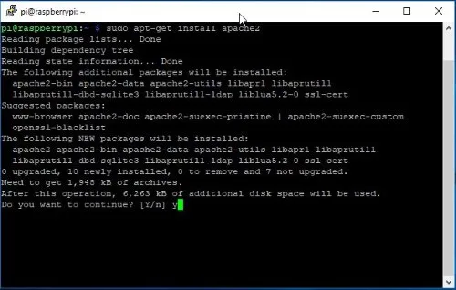 Die Installation eines Apache2 Webservers erfolgt mit dem Kommandozeilenbefehl „sudo apt-get install apache2“.