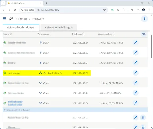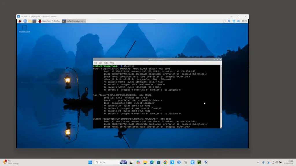 In meinem Fall habe ich den Raspberry Pi über ein LAN-Kabel direkt mit dem Router verbunden, was eine deutlich stabilere und schnellere Verbindung ermöglicht als über WLAN. Gerade bei der Fernsteuerung mit VNC sorgt das für ein flüssigeres Nutzererlebnis ohne Verzögerungen oder Verbindungsabbrüche.