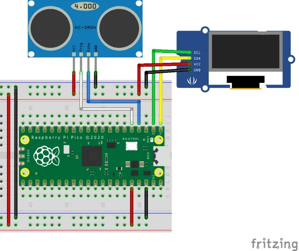 In diesem Beitrag möchte ich dir zeigen wie du einen Ultraschallabstandssensor vom Typ RCW-001 und ein OLED Display an den Raspberry PI Pico anschließt.