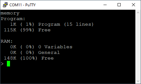 In meinem Fall habe ich Code mit einer Größe von 1 KB und 15 Zeilen geschrieben und noch 115 KB frei. Der flüchtige Speicher von 148 KB ist derzeit nicht belegt (es wird gerade kein Programm ausgeführt).