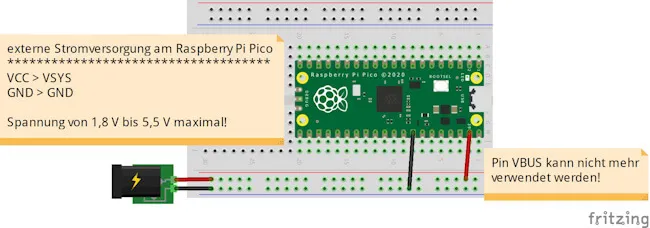Anlegen einer externen Spannungsversorgung an den Raspberry Pi Pico via VSYS
