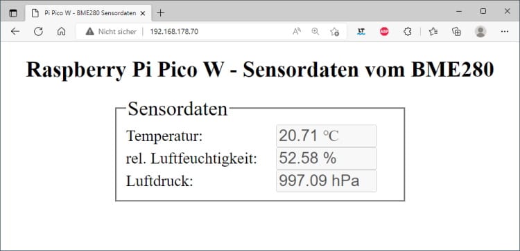 <h1>Raspberry Pi Pico W - Sensordaten vom BME280</h1>