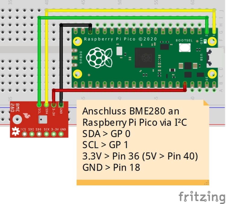 Aufbau der Schaltung – Sensor BME240 am Raspberry Pi Pico W
