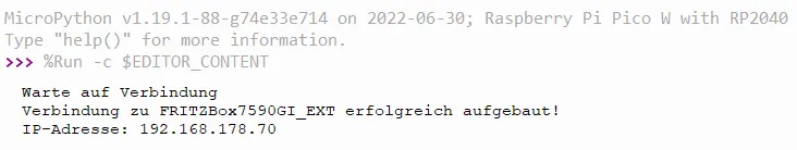 Wenn die Verbindung aufgebaut wurde, dann wird die IP-Adresse des Pico’s ausgegeben. Da wir jedoch keine Webseite deployen, gibt es nichts zusehen, wenn wir die IP-Adresse in den Browser eingeben.