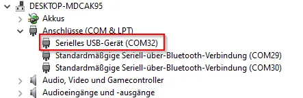Solltest du mehrere Geräte an deinem Computer angeschlossen haben (das ist nichts Ungewöhnliches) dann kannst du zusätzlich im Geräte-Manager von Windows (Windows-Taste + X, Geräte-Manager) unter „Anschlüsse (COM & LPT)“ dir alle seriellen Geräte anzeigen lassen.