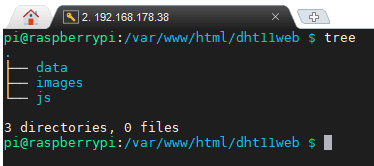 sudo mkdir dht11web cd dht11web sudo mkdir data sudo mkdir js sudo mkdir images