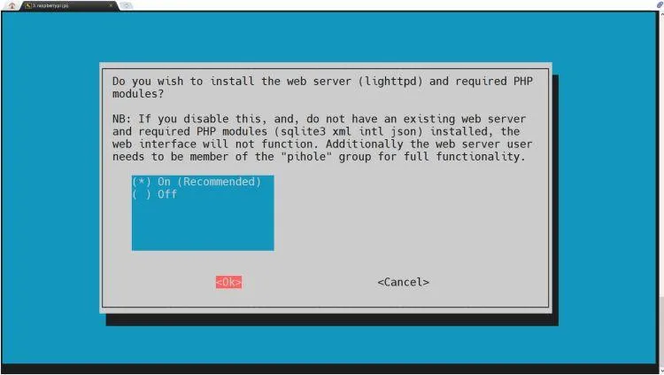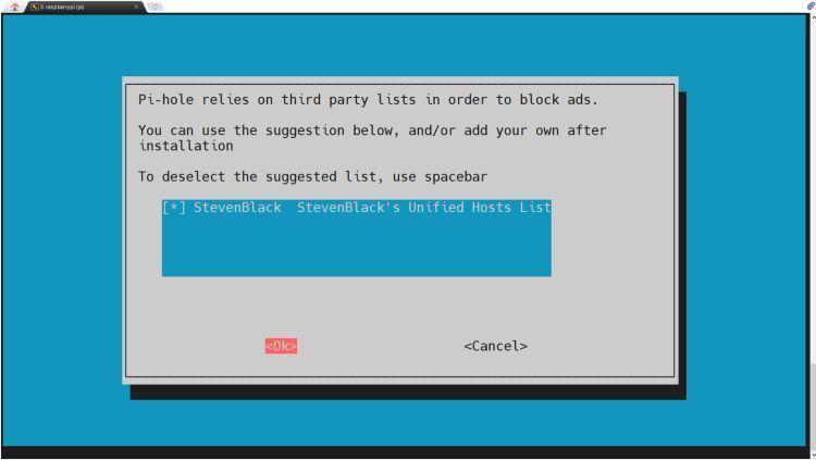 Während der Installation wird man durch einen Wizard geführt, welcher die Konfiguration des Pi-hole darstellt. In meinem Fall belasse ich die Voreinstellungen und bestätige die Fenster jeweils mit der Schaltfläche „OK“.
