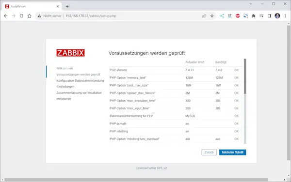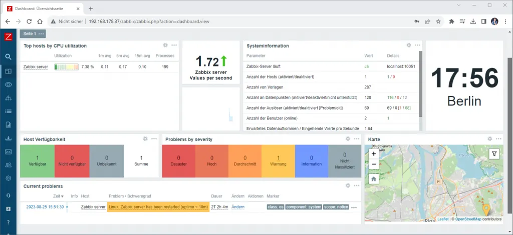 Das Tool Zabbix läuft gemäß Eintrag im Handbuch erst auf leistungsstarken Systemen mit min. 8 GB RAM und zwei Kernen. Von diesen Anforderungen ist der Raspberry Pi Zero 2 WH weit entfernt und daher bin ich selber einmal gespannt, inwieweit das Tool läuft.