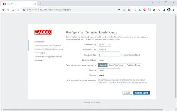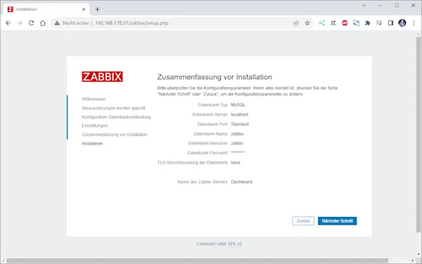 Damit ist der Datenbankserver eingerichtet und wir können mit der eigentlichen Installation von Zabbix beginnen.