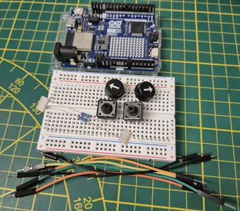 Um das Spiel aufzubauen, brauchst du neben dem Arduino UNO R4 WiFi noch zwei Taster. Falls du das Arduino Plug and Make Kit besitzt, kannst du das Spiel auch damit umsetzen. Ich werde dir beide Optionen vorstellen, damit du das Projekt unabhängig davon, ob du das Kit hast oder nicht, nachbauen kannst.